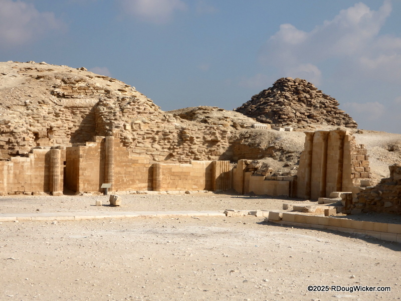 One thing I did not touch upon on Monday is Djoser, the pharoah for whom this comlex was built. Djoser ruled for somewhere between 19 and 28 years, depending on how the ancient texts are interpreted, but 28 years is probably the more accurate of the two guesses judging from the buildings for which he had built. That would put him in the Second Dynasty in the Old Kingdom. And that would place him at the beginning of the “Age of the Pyramids,” which is appropriate since the Step Pyramid was Egypt’s first.