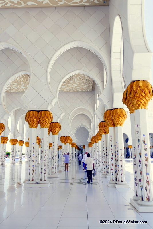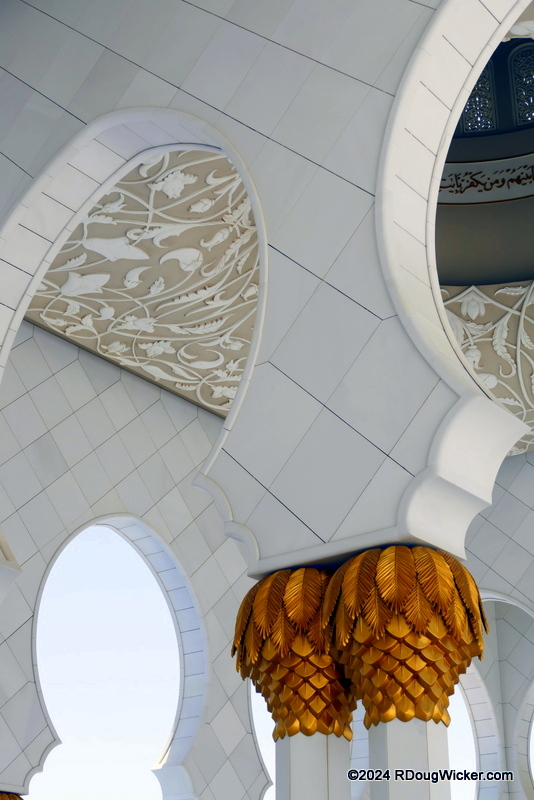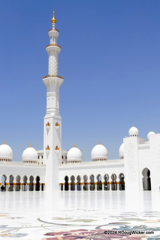 Of course, as with any mosque, the most impressive vertical features are the minarets. Here at Sheikh Zayed Grand Mosque there are four, each anchoring a corner of the four-sided courtyard: