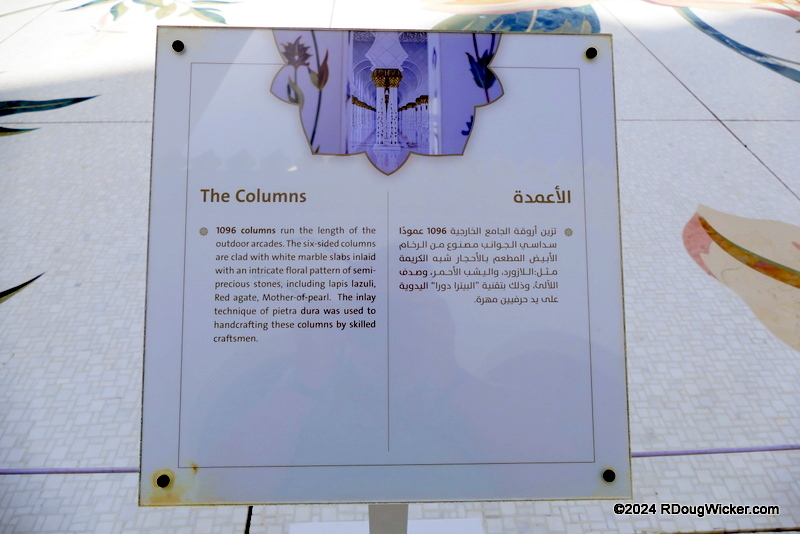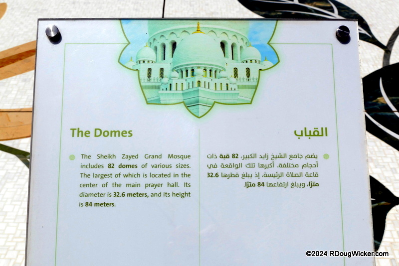 Plaque describing the many domes adorning Sheikh Zayed Grand Mosque