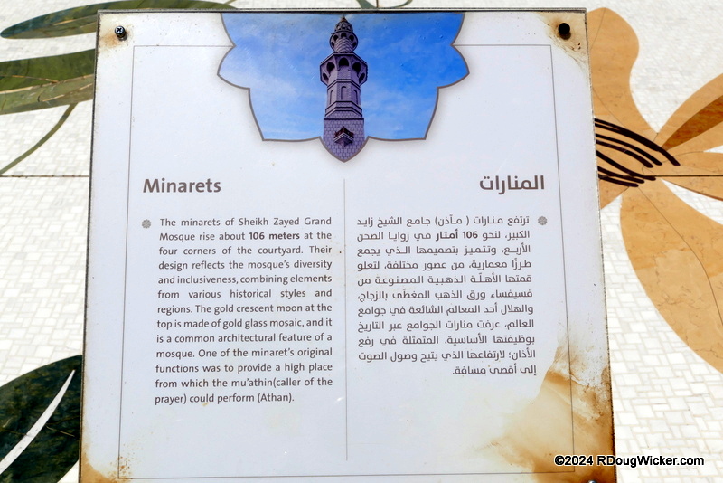 plaque describing the Sheikh Zayed Grand Mosque minarets