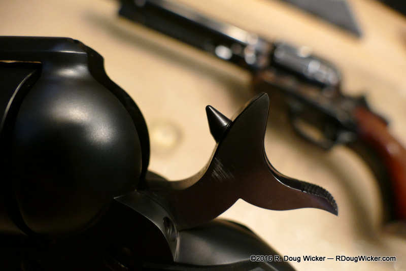 The trigger on the U.S.F.A. Rodeo is very good . . . but it’s not quite as good as that on Uberti’s El Patrón Competition. Both exhibit minimal-to-nonexistent trigger movement and an exceptionally clean break, but the El Patrón Competition has, as you would expect from the name, a competition trigger that breaks at what I estimate to be barely over two pounds. Most people would consider that a “hair-trigger”. The Rodeo trigger requires slightly more force to trip the hammer, but not much. Thus, the Uberti wins on three counts — trigger pull, price, and finish.