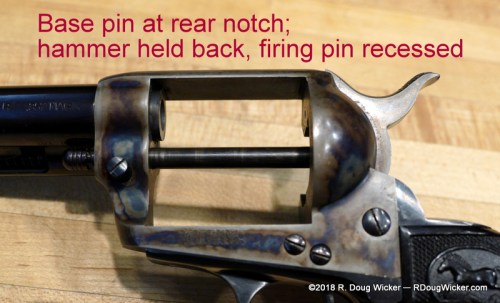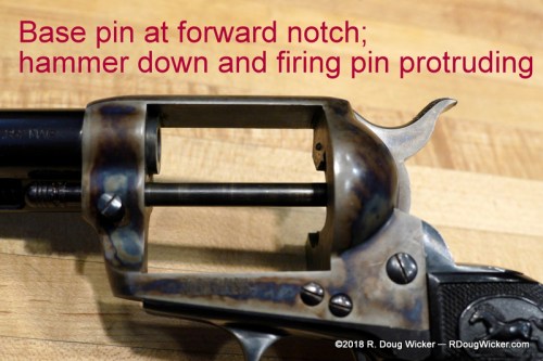 - Thumb back the hammer two clicks, to the half-cock position; this frees the cylinder for rotation by hand