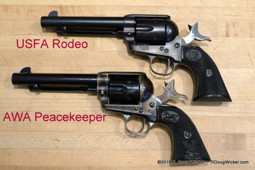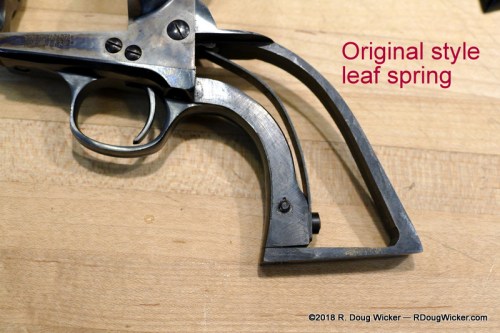 ‘Unmodified’ means that both of those Bearcats were never sent back to Ruger for the transfer bar modification that would make safe the loading all six cylinders. That is why I’m referring to these pistols as Old West-style firearms, as they adhere closely to the design of the Colt 1873 Single-Action Army ‘Peacemaker. Below shows a comparison of a copy of the original Colt 1873 design along with an old issue three-screw Ruger Single Six (also unmodified) and an old issue Bearcat, all of which are only safe when the hammer rest over an unloaded cylinder chamber (more on that below):