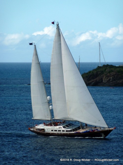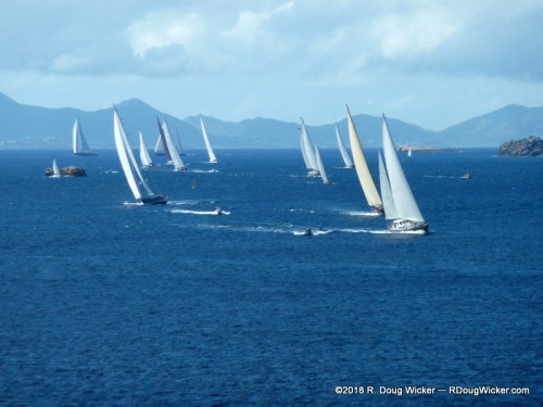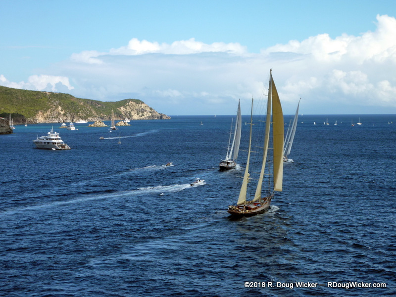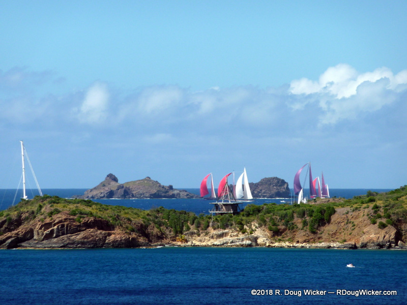 And, as luck would have it, we arrived here for the annual Bucket Regatta. Here come the yachts now, rounding the back side of the island: