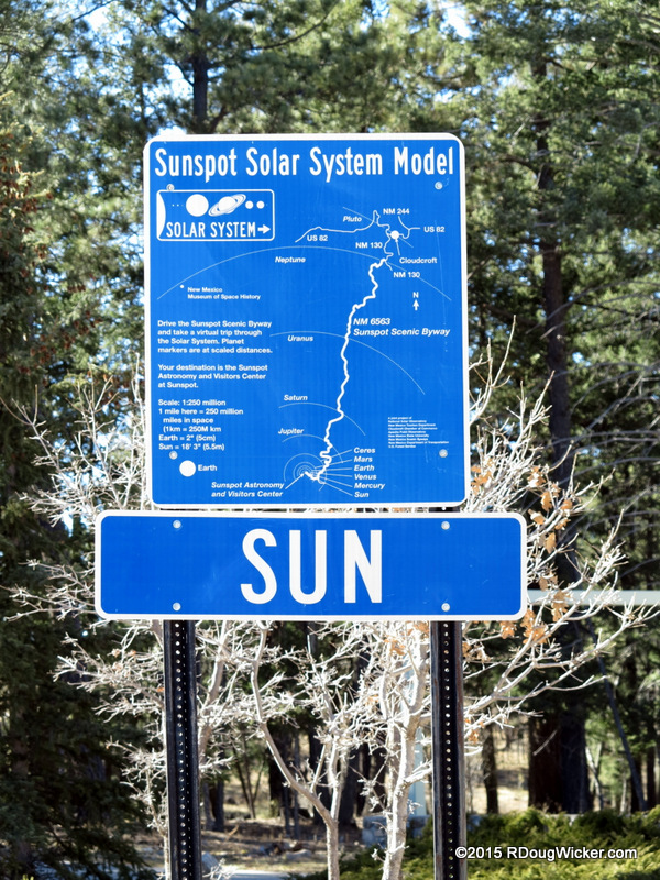 As you drive south from Cloudcroft you pass signs along the way that are distance-wise proportionally to scale with our solar system, with the entrance to the National Solar Observatory representing the Sun, and Cloudcroft as Pluto.  You know you’re getting close when you pass inside Jupiter.