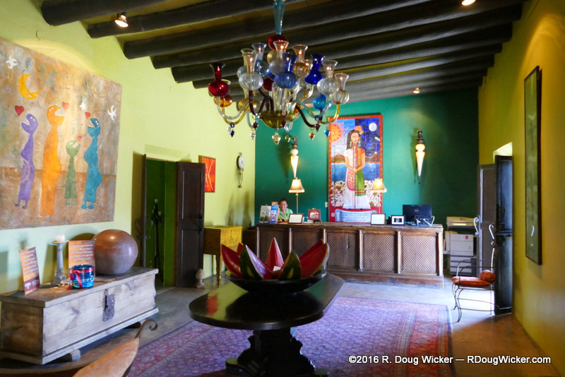 Pure coincidence, I’m told. And while the façade is indeed lovely, it doesn’t even hint at what you’re going to see inside the Hotel California. Take a look at the front desk (where it you check out any time you like and lobby: