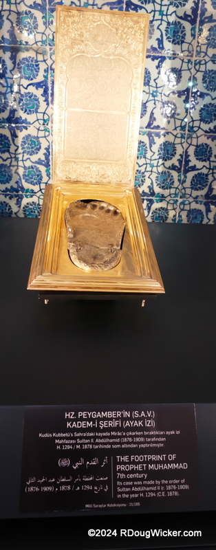 On Monday I presented to you images of several sandals associated with the Prophet Muhammad. Here’s an image depicting a cast of his footprint:
