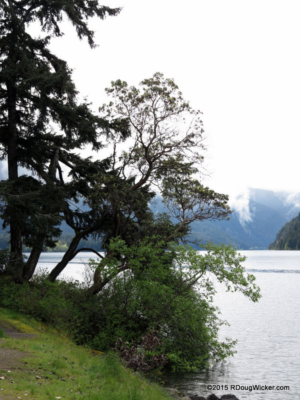 Our goal on this leg of the trip was Marymere Falls, but along the way we stumbled upon Lake Crescent, a wonderful and enchanting deep-water lake that on this day was ringed by fog-shrouded mountains and beautiful pine forests.