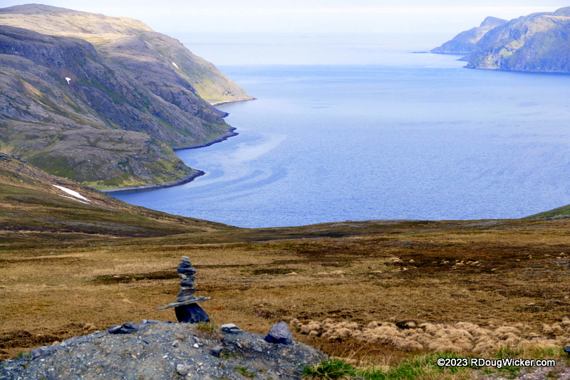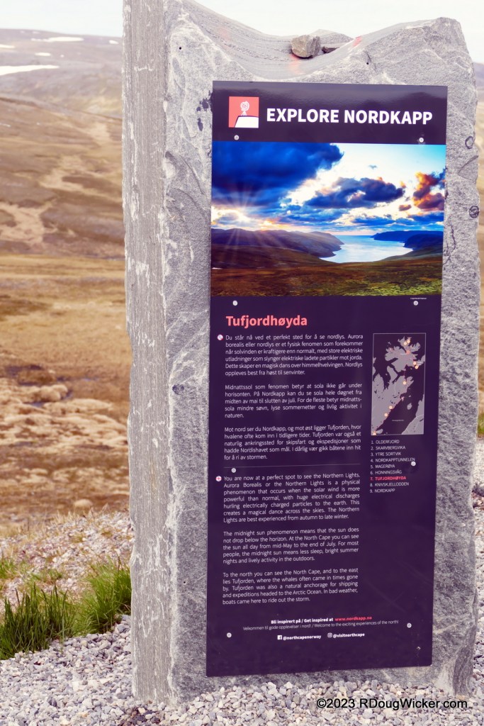 We got back on the tour bus and left Kamøyvær for another small village farther north, Skarsvåg. But before we would arrive there we would pass through a magical place called Tufjordhøyda. In English this is known as the Aurora Lights View Parking area, and the surrounding countryside makes this a worthy stop even in broad daylight with zero chance of seeing the Aurora Borealis (Northern Lights). I posted the picture below at higher-than-normal resolution so that you can read the legend: