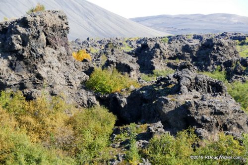 Our tour stopped within Vatnajökull National Park some ways from the Dettifoss (Falling Waterfall), which would require us to hike in across basalt lava fields to get to the falls. The terrain is rugged, but not too difficult a stroll along the well defined pathways.
