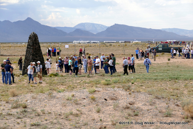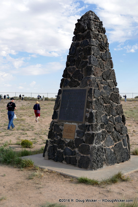 Trinity is open for public access annually on the first Saturday in April and October. For this year — 2016 — that would be Saturday, April 2 and October 1. The easiest way to get to Trinity is on U.S. Route 380 eastbound off Interstate 25 just south of Socorro, New Mexico, or westbound on U.S. Route 380 from Carrizozo, New Mexico, to the Stallion Gate entrance (12 miles east of San Antonio, NM; 53 miles west of Carrizozo, NM) sometime between the hours of 8:00 A.M. and 2:00 P.M., at which time that entrance is closed. The alternative is to arrive early in the morning at the Tularosa High School before 8:00 A.M. and caravan in to Trinity under escort, which requires another escorted caravan back out from the site at between 12:30 and 1:00 P.M. The site is closed to all visitors at 3:30. As you can see, that makes the unescorted Stallion Gate route the more visitor friendly route. A word of caution: measure the distances I cited from San Antonio or Carrizozo. The entrance is poorly marked and easily missed.